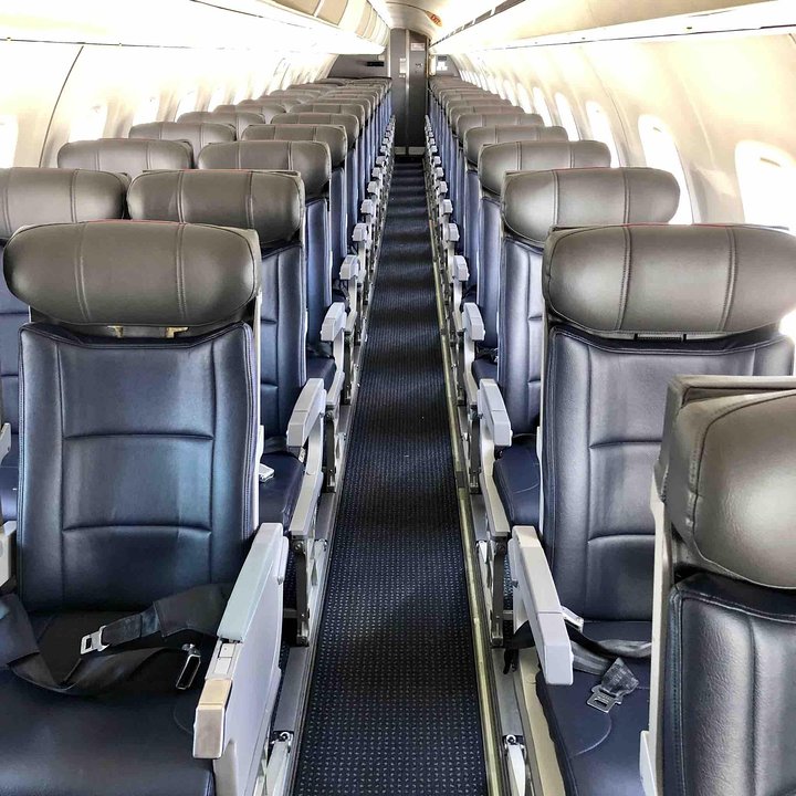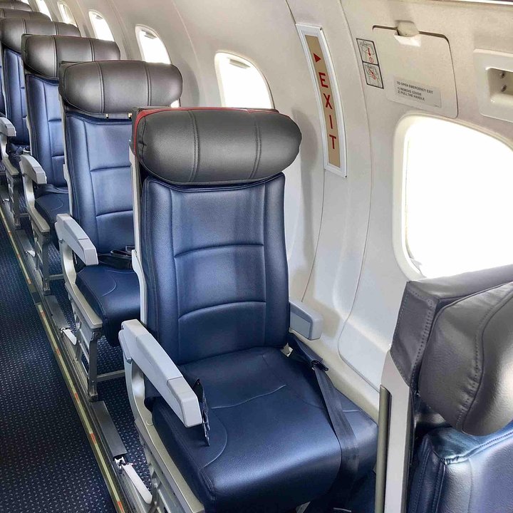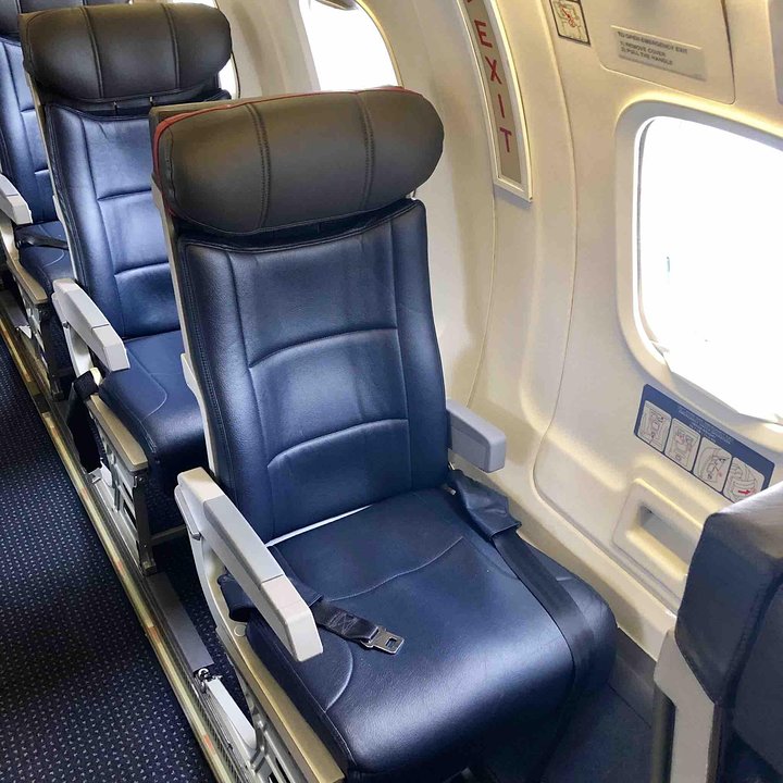 This type is used on short-haul domestic segments and many passengers enjoy the 1-2 layout for comfort and personal space. Onboard storage is limited as there is only overhead storage on the right hand side. Standard rollaboard suitcases will not fit in these compartments and may need to be checked at the aircraft door. From time to time, passengers may be moved for weight and balance considerations. There is also limited under seat storage at all window seats due to the curvature of the fuselage.