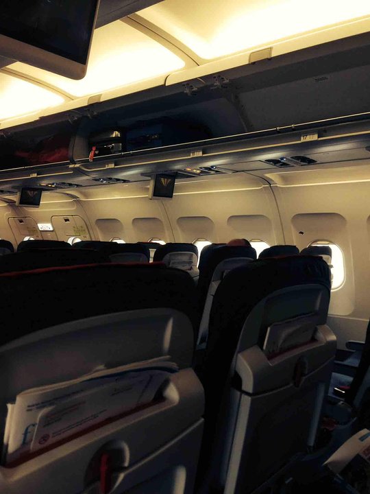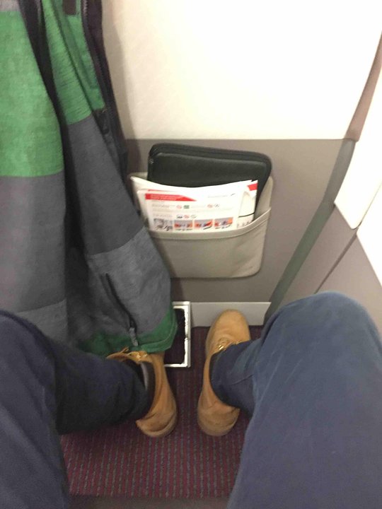 Business Class is made by covering the middle seats in the first few rows of the aircraft. Meaning, the configuration of this aircraft varies. The seat pitch and width remains the same, however, you are given a bit more space with the middle seat being blocked out.
