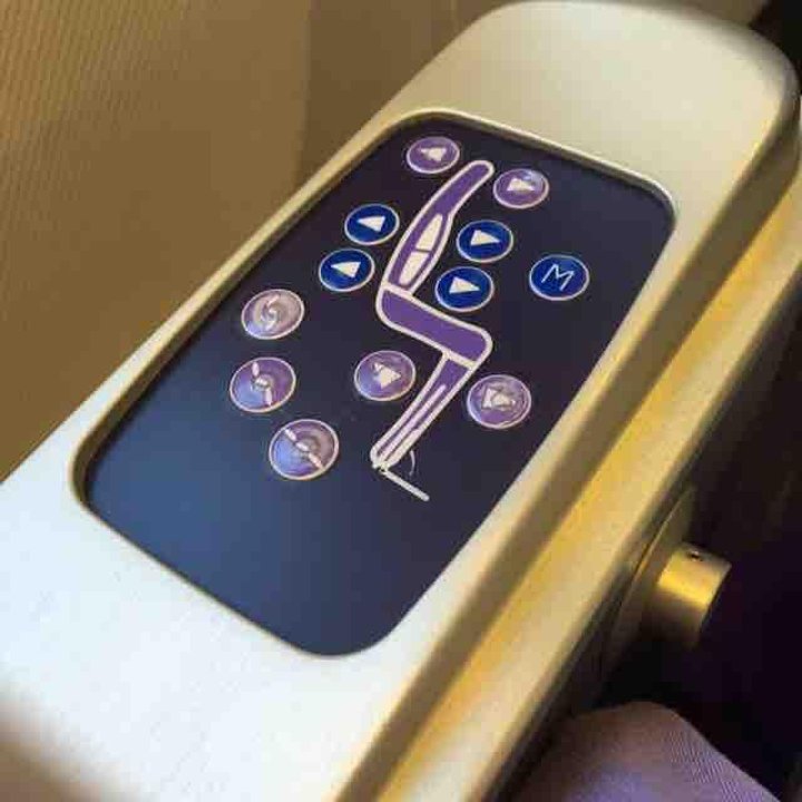 Thai Airways' B777-300 aircraft offers two classes of service: Royal Silk Business and Economy. Royal Silk Business features 34 seats in rows 11-16 and Economy Class has 330 seats in rows 31-72. All seats are fitted with AVOD entertainment systems and in-seat power ports. Royal Silk Class seating offers lumbar support and massage features and foot and leg rests are available in both classes.