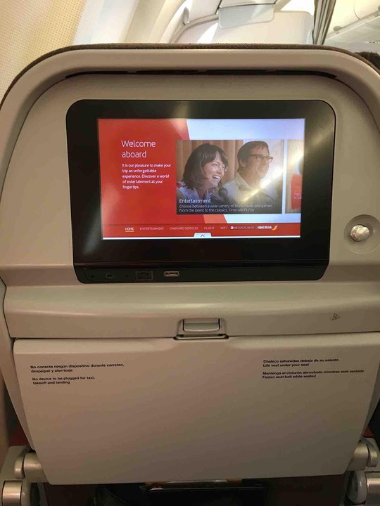This aircraft operates on long-haul routes with 29 Business Plus Class seats, 21 Premium Economy Class seats and 242 Economy Class seats, which Iberia refers to as Tourist Class. All the flat-bed seats in Business Class have direct access to the aisle.